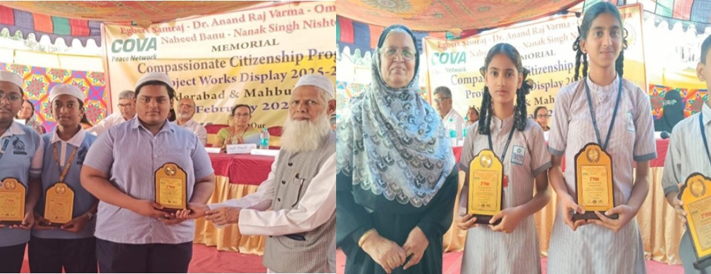 Participation and Exhibits Hyderabad, April 3, 2025: The Project Works Display Program organized in Hyderabad showcased students’ research and initiatives on pressing social issues, including Climate Change: Concerns and Corrections; Eve Teasing: Problem and Remedies; Sensitivity and Care for the Differently Abled. The event, attended by prominent educationists and activists, highlighted the need for experiential learning and social advocacy to foster responsible and compassionate citizens. Inculcating Values through Education Speaking at the event, Prof. P.L.V. Rao, Member, Telangana Education Commission, emphasized the importance of education in fostering values of compassion, equality, equity, secularism, and harmony—all enshrined in the Indian Constitution. He stressed that no societal progress is possible without peace and harmony and that education should not only impart knowledge but also nurture creativity and imagination. Prof. Rao expressed hope that programs like the Compassionate Citizenship Program would be replicated across the country. Mr. Zayaan Babukhan, Guest of Honour, lauded the Compassionate Citizenship Program for encouraging students to explore social issues beyond textbooks and classrooms. He noted that such initiatives address crucial yet often overlooked topics, making a significant impact on society. Scaling Up the Compassionate Citizenship Program Students from government, private, and residential schools engaged in field studies, interacting with various stakeholders, including victims of eve teasing, the differently abled, and officers of SHE Teams. For climate change research, students interviewed senior citizens to understand water table depletion, encroachment on lakes, and rising climate extremes over the past 30 years. Project Works and Awards The event culminated in students preparing Project Work Reports, where they compiled findings from field visits, secondary sources, identified key problems, proposed solutions, and documented actions taken. The top 100 project works from 30 schools were exhibited, showcasing innovative solutions and social action Prominent speakers and activists, including Mr. Gufran Siddiqui (Peace Activist, Ayodhya), Ms. Nikita Naidu (Climate Activist), Ms. Amina Nilofer, Ms. Jyotirmaya Jandhyam (Gender Experts), Ms. Noor Jahan Siddiqui (Women’s Activist), Mr. Dhananjay, and Ms. Sumaira (Resource Persons for Differently Abled) and Mr. Ateeq Iqbal addressed the students and distributed prizes and certificates. Honoring COVA’s Legacy A Future of Socially Aware Citizens NASIM Foundation, USA and ICAN are Partners of Compassionate Citizenship Program and the Project Works Display Program was sponsored by Khaja Muhammedullah Khan and in Memory of Kasba Ramaiah.